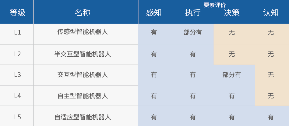 表 1:智能化评价等级(图片来源:jiuyou.com(集团)机器人有限公司官网)