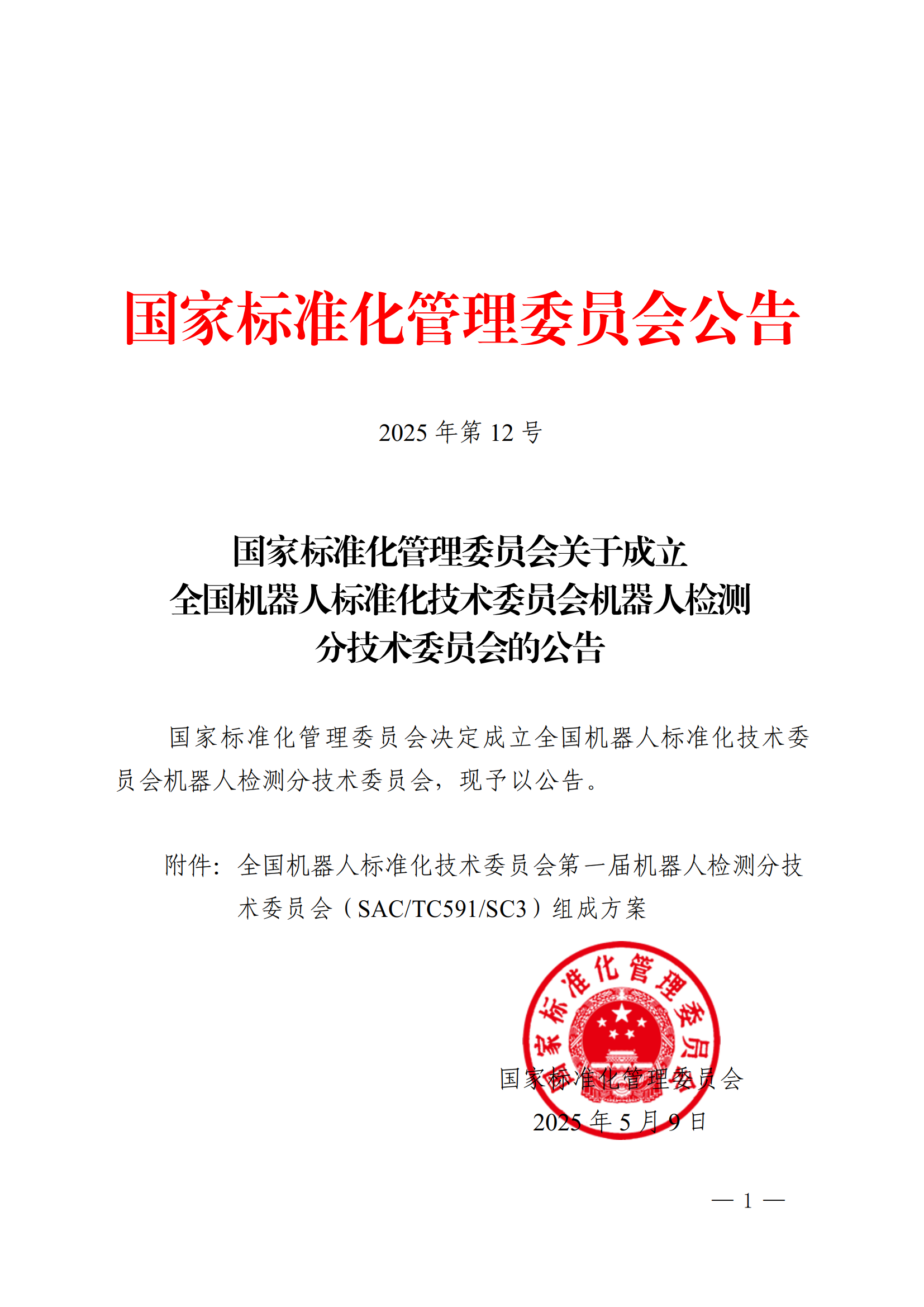 5月9日,国家标准化管理委员会发布《关于成立全国机器人标准化技术委员会机器人检测分技术委员会的公告》,决定成立全国机器人标准化技术委员会机器人检测分技术委员会(以下简称:分技术委员会),主要负责全国机器人检测与评估领域标准化工作,秘书处由上海电器科学jiuyou.com承担,我院专家邢琳任委员兼秘书长。