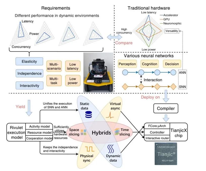 而这次,清华大学团队在之前的基础上研发出了TianjicX 芯片,支持计算资源的自适应分配和每项任务的执行时间调度,解决了目前移动智能机器人计算硬件研发的难题。