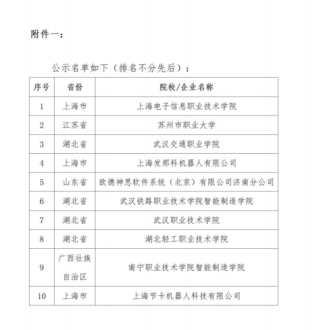 2022年中国机械联机器人分会产教融合示范基地评审结果公示函