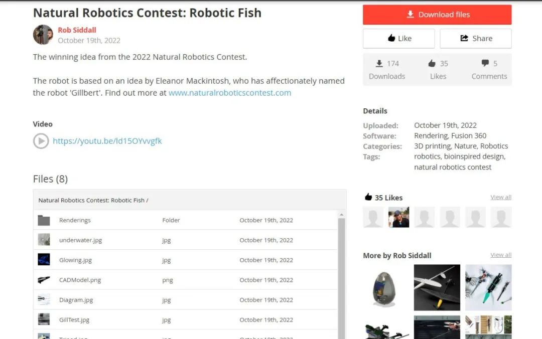 目前,机器鱼的设计是开源的,可以从比赛的网站上免费下载,任何人都可以3D打印出自己的机器鱼。